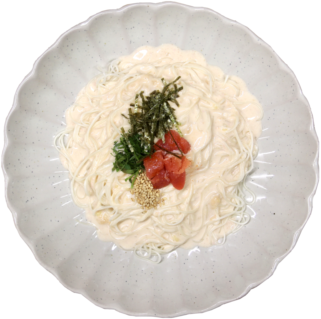 明太子、生クリーム、牛乳、チーズをふんだんに使用し、とろみがつくまで混ぜ込みます。素麵の細い麺にソースがよくからみ、その名の通り本当の贅沢なクリーム素麺がで仕上がります♬